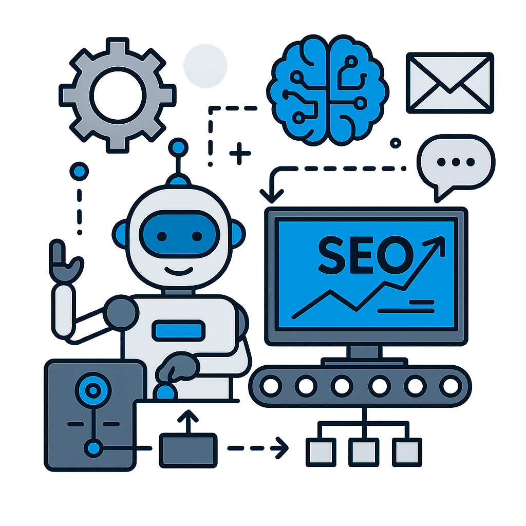 ORCYN combine SEO automatisé (30–90 articles/mois, maillage & schémas, indexation en temps réel) et automatisations sur mesure (workflows, intégrations API, chatbots) pour générer des leads et libérer du temps.